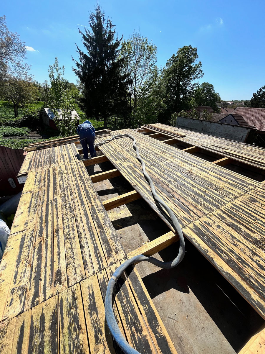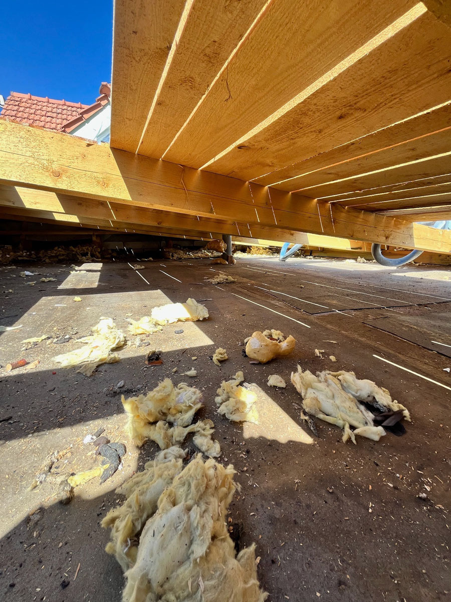 Zateplení střechy a odstranění staré poškozené izolace na domě.