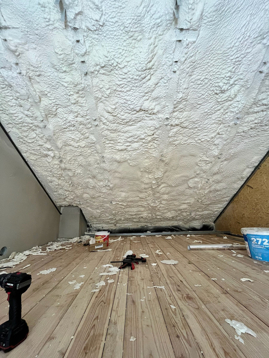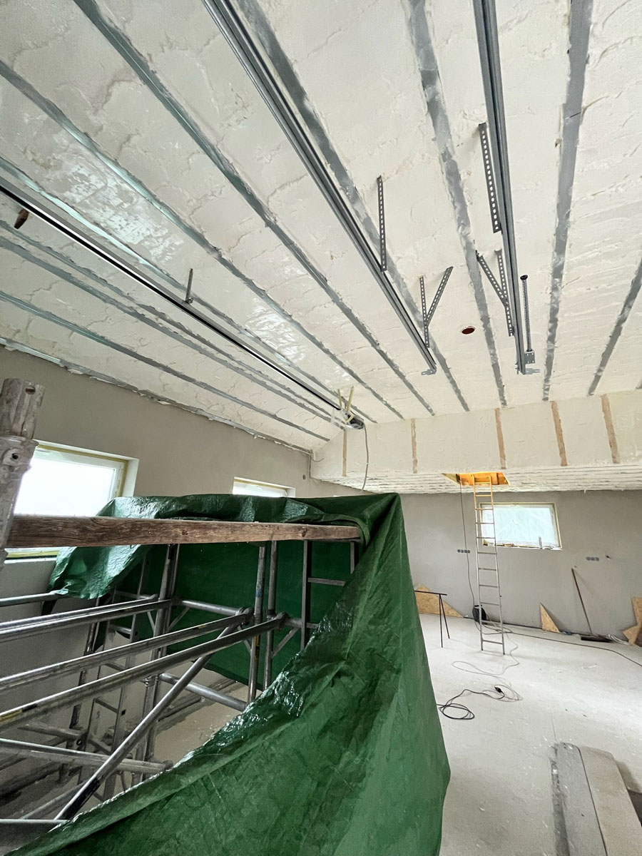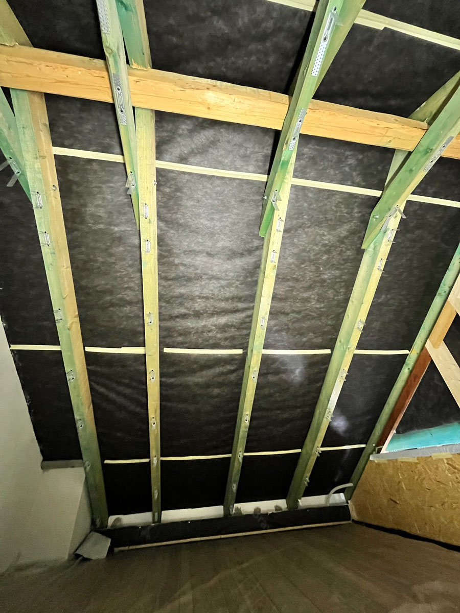 Realizace zakázky v Bojkovicích – zateplení půdního prostoru a stropu garáže. Celkem bylo zatepleno 95 m² nástřikem měkké PUR pěny o tloušťce 22 cm.