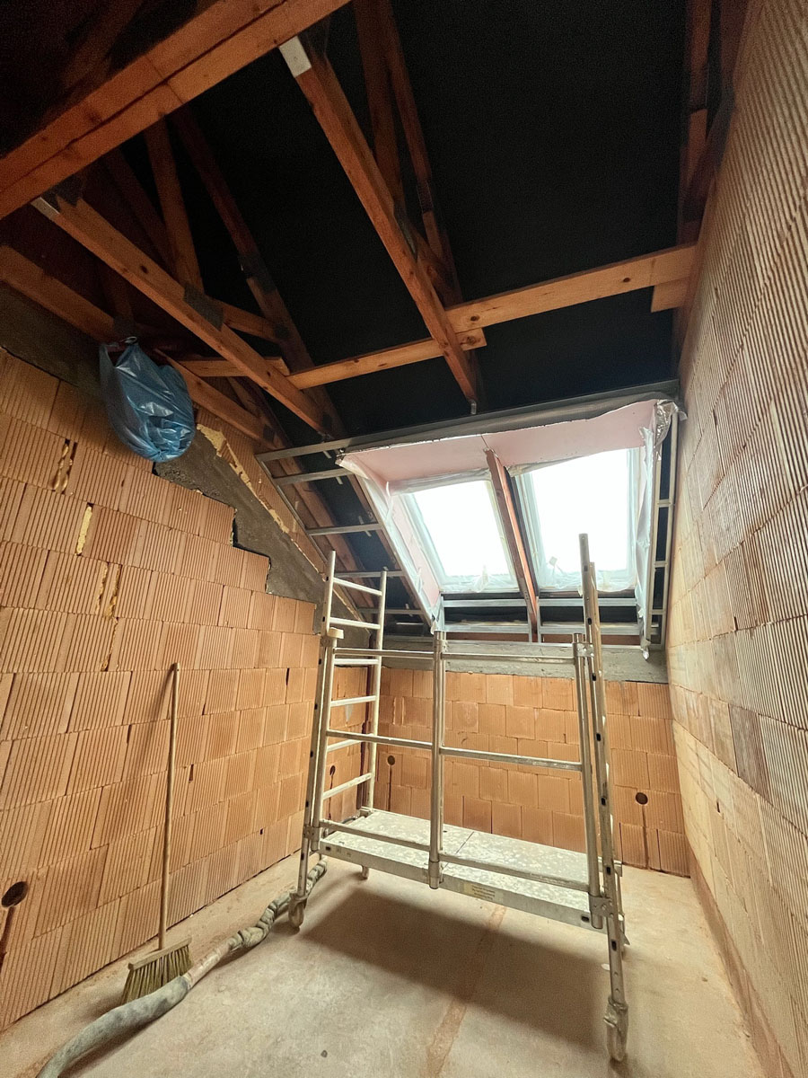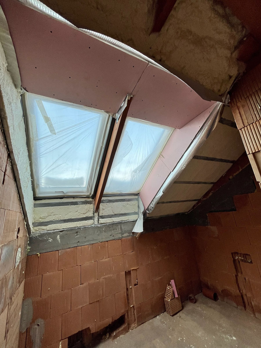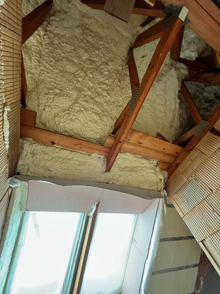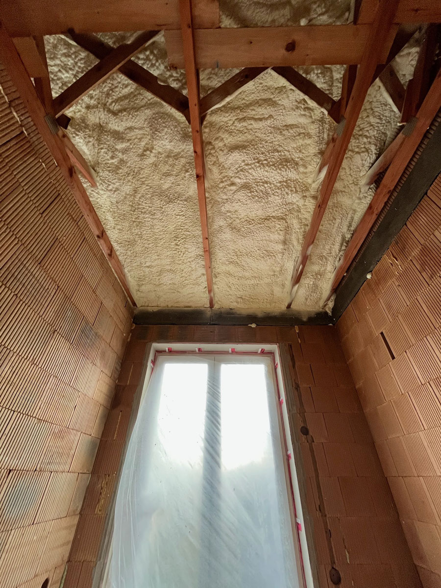 Zateplení podkroví bungalovu měkkou PUR pěnou.