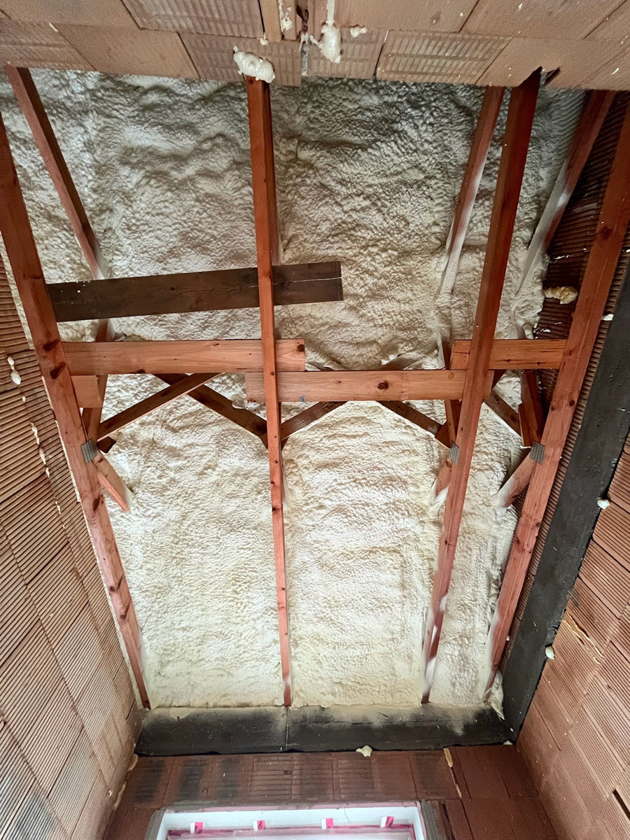 Realizace zakázky – zateplení střechy rodinného domu s vrstvou nástřiku naší měkké PUR pěny 30 a 25 cm.